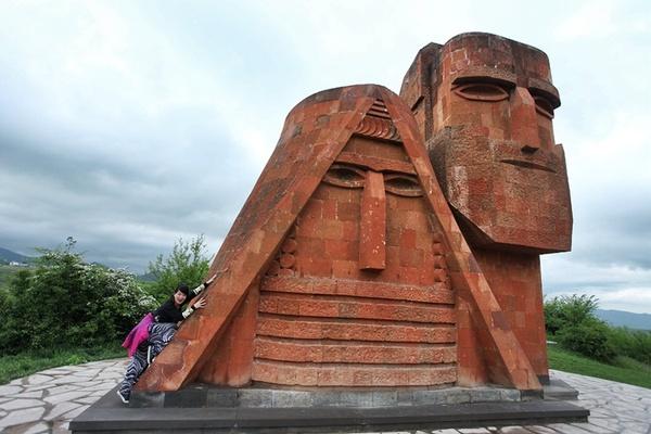 雕塑位于山上,从高处俯瞰,眼前的景象仿佛卡拉巴赫的缩影:绿色、质朴,接地气。