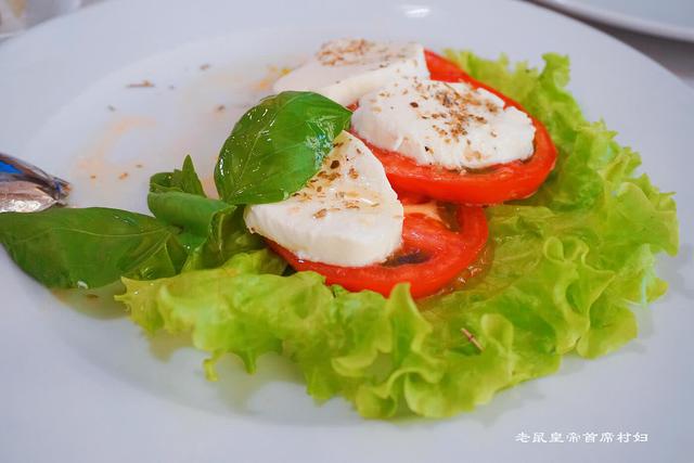 我们点的沙拉是最简单粗暴的西红柿切片,不同之处是每片西红柿都辅以一片奶酪,口味不重,一般人都能接受。