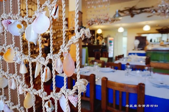 图中这家地中海餐厅位于俄罗斯叶卡捷琳堡市中心、伊塞特河河边,它的装修风格完全配合餐厅名字:蓝白为主色调,饰有贝壳串成的门帘作为隔断。