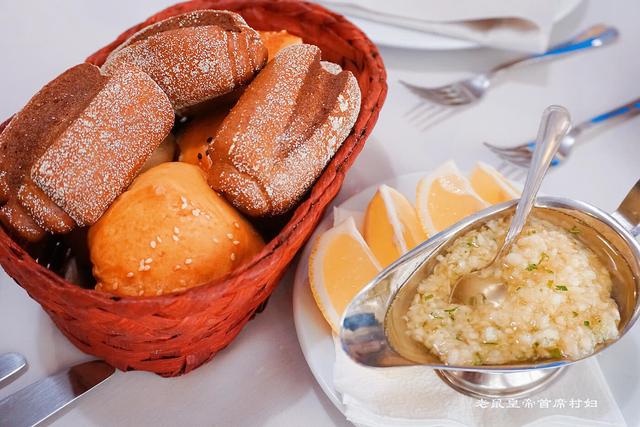 俄罗斯人面包做得好,图中这现烤的餐前面包看着就眼馋。他家的黑面包不是特别松软,很有嚼头,一定要搭配店家独门秘制的蒜泥酱料,非常好吃。