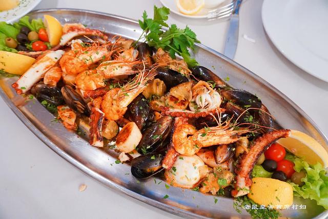 饭店特色菜之海鲜烧烤拼盘,可以选择大小份,分量非常足,内容也很丰富,有:虾、鱿鱼、瑶柱、贝壳等等。