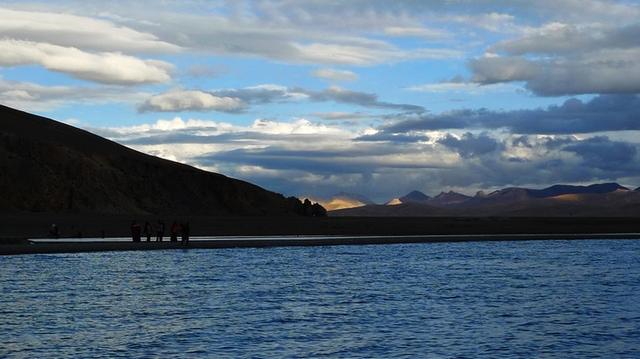 残阳的余晖懒懒地挂在天边,只剩一丝相当缥缈的极浅的金色。天有些阴,纳木措让我们多少有些失望。