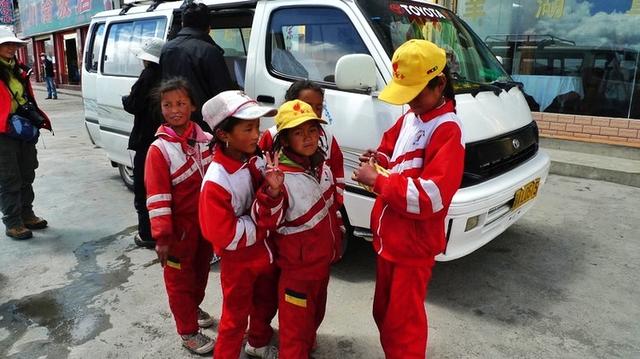 一帮藏族小学生一直跟着我们,村妇遂将带来的饼干分与她们。一个年纪稍大些的孩子手持饼干,其他人排好队,一根根的分,非常的仔细,非常的公平。我们吃饭的时候,她们仍然一直在窗外看。等到我们吃完,又上来索要西瓜吃,作为回报,她们自愿主动给我们跳了个藏族舞。