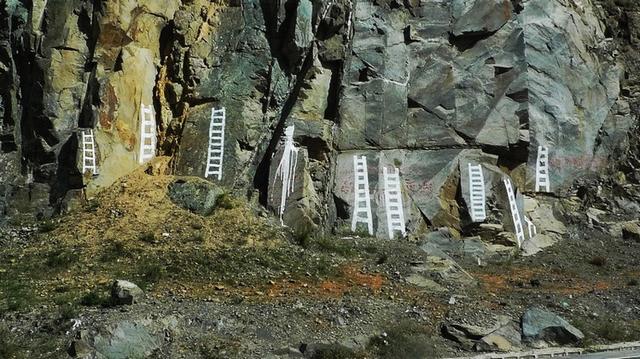 下山后在曲水大桥看到的水葬台以及路边的“梯子”,至今不知其用途,猜测是灵魂升天之工具。