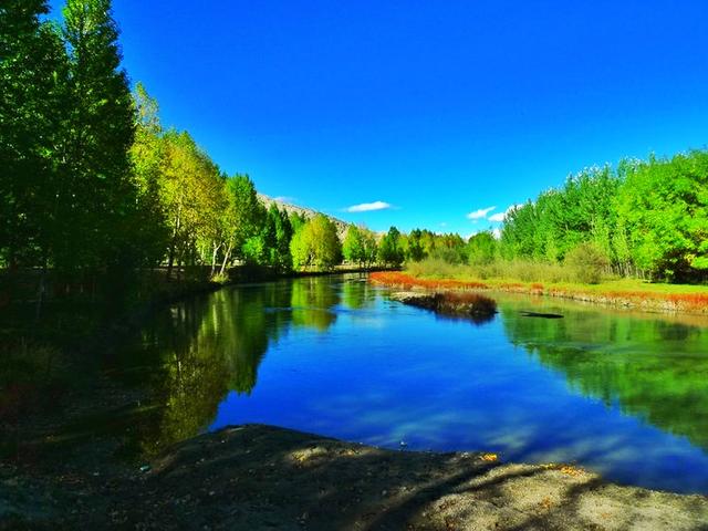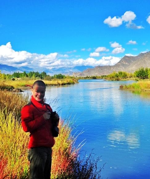 站在拉萨河边,身处色彩浓烈的各式水草间,背后是叶已转黄的杨树,深浅不一的金色在傍晚的阳光下显出一派高贵优雅。眼前的这小段拉萨河并不宽,两侧的青杨林充满了生机,树下是红草地以及灰色的芦花,远山如黛,头顶是蓝丝绒般的天空,云彩淡去,油画般的效果随着光线的变化充满了生命的张力,想起凡高笔下的向日葵,这个疯狂的天才眼里的向日葵过于妖娆,有种令人生畏的欲望感,拉萨河同样妖娆却要高洁得多,是那种让人舒服得没有负担的美丽。