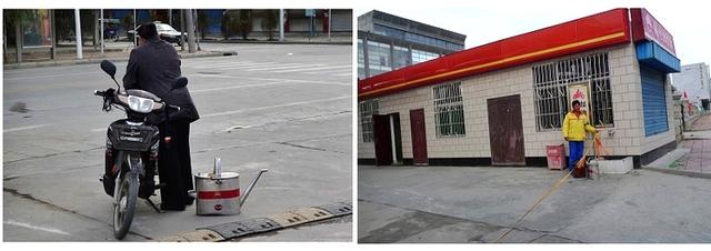 次日早上从日喀则出发时天略阴,不过车子开出日喀则不久太阳就现身了。离开日喀则前,车子去加油,发现加油站有重兵把守,一条绳子警戒线将加油站结结实实地围了起来,车上所有乘客被告知集体下车。大家在路旁等待时,发现摩托车不能入内加油,只能将钱交给加油站工作人员,然后接过他们递出来的油桶自行将油灌进摩托车油箱。