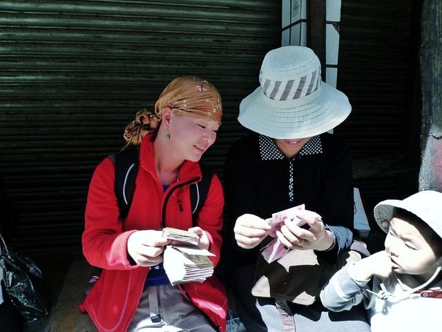 下午换了尼币,美元兑尼泊尔卢比的汇率为1:11.4,后来到加德满都一打听基本上都在1:10.46左右,其他几个地方更低。所以,建议如果是从拉萨出关,直接在樟木换够尼泊尔所需卢比。