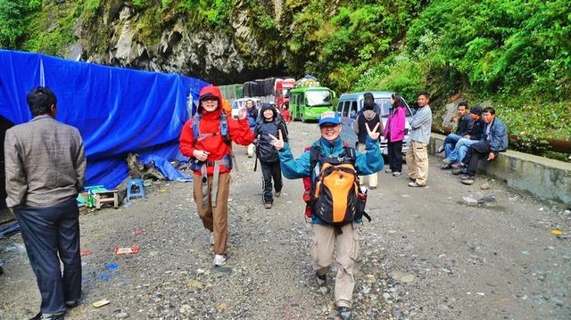 皇帝见状,立即振臂高呼,带领大家背包徒步去樟木镇。浩浩荡荡10余人,负重徒步越过众多车辆,穿越塌方地带,一边雄赳赳地前行,一边望着右手边的云山雾罩,很有些豪迈感。
