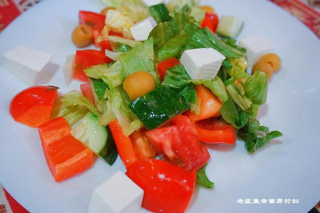 在俄罗斯吃饭,除了正宗中餐厅,其他饭店想吃到新鲜蔬菜几乎只有一种选择:蔬菜沙拉。上图中这份沙拉几乎是我们每餐必点菜。天啊,已经是点了三份沙拉啦。