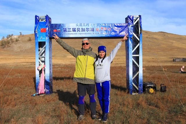 (2017-9-23,我们参加第三届为期四天的贝加尔湖“徒步毅行”挑战赛, 老鼠皇帝拿了第一名,第二名是图中右侧的俄罗斯大二女生)