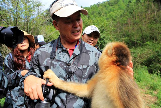 (2012-7-9,在湖北神农架与金丝猴亲切交流)