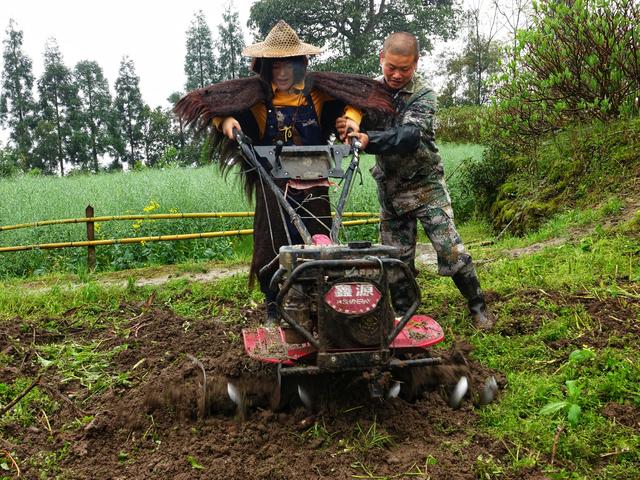 相比之下,村妇可就没那么幸运了。虽然也是常年户外行走,但毕竟是一枚纤弱女子,这款手扶拖拉机对她来说实在是太沉重了。还好,在生产队长根荣的帮助和指导下,最终,村妇还是掌握了技巧,可以熟练操作了。