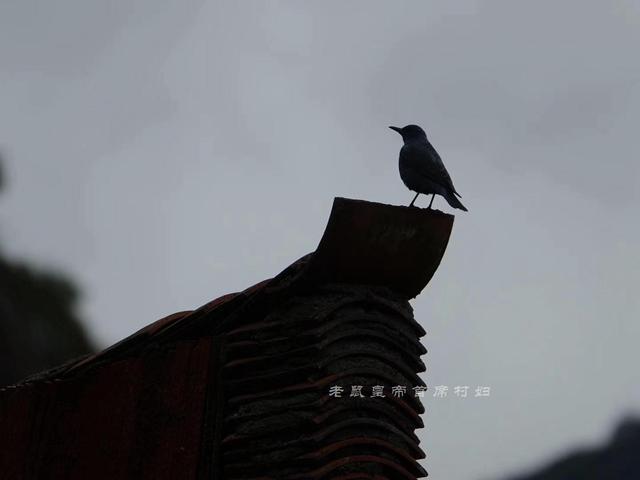 一只鸟倏忽飞过,落在了房子的飞檐上,傲然、淡定,端的一副主人家模样。