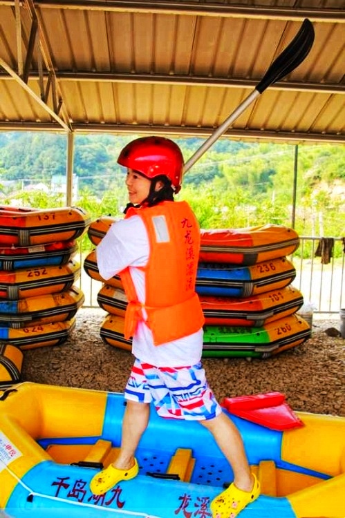 据说,千岛湖大大小小漂流项目很多,而我们选择的据说是最平缓的那一条——九龙溪漂流。原因无他,概因漂者都是美女。皇帝说了,就这也叫漂流?说这话时他的嘴都撇天上去啦。