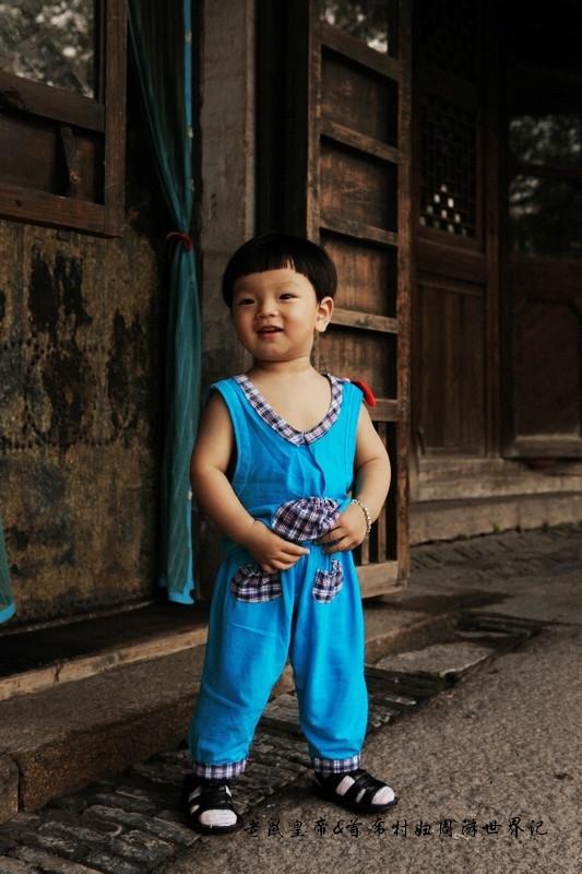 图中的古镇小厮是不是超有镜头感?孔雀蓝的背心和长裤在褪了色的斑驳木门前显得格外耀眼。