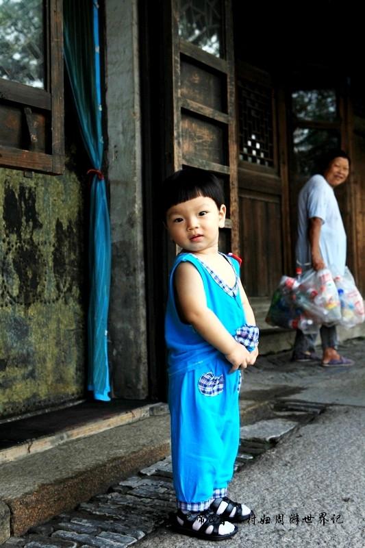 请注意:图中小厮一身蓝色,是不是与背景中的蓝色非常搭?其与古镇的融入是如此的和谐,连后面的老奶奶都忍不住驻足回眸观望。