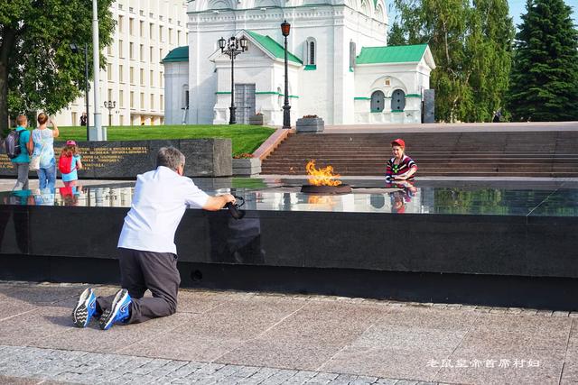 这位老人在永恒之火跟前,以下跪的姿势拍了一张纪念照。我们估计,也许他就是一位二战英雄。