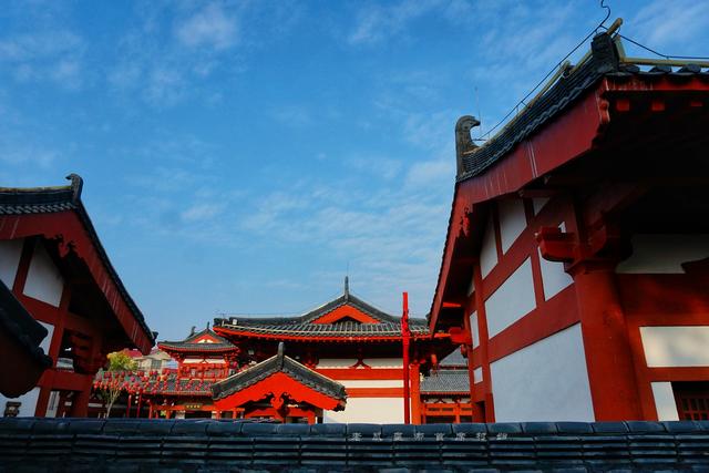 窃以为游览这个景区最好的着装是穿一身汉服,行走在红白两色的仿古建筑之间,来一场穿越时空的旅行,梦回唐朝盛世。