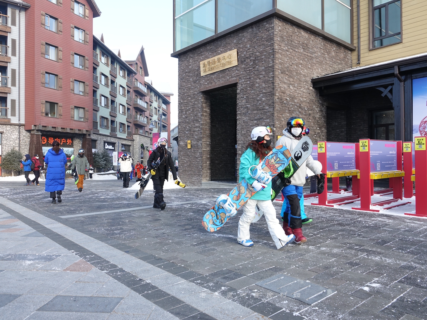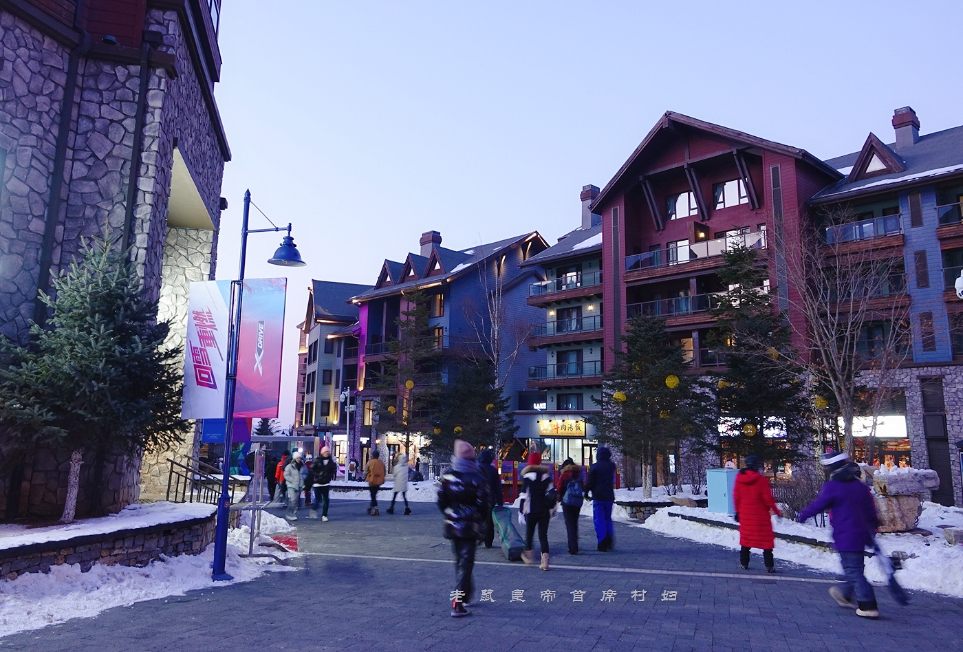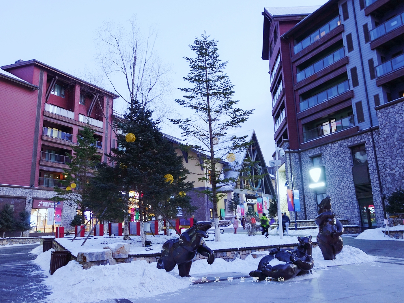 虽说主要人设是滑雪场,但松花湖绝不仅仅只是滑雪目的地,它更像一个综合的旅游目的地。雪场里配备的万科小镇,主题风格颇具欧风,看上去很有西式之洋气。