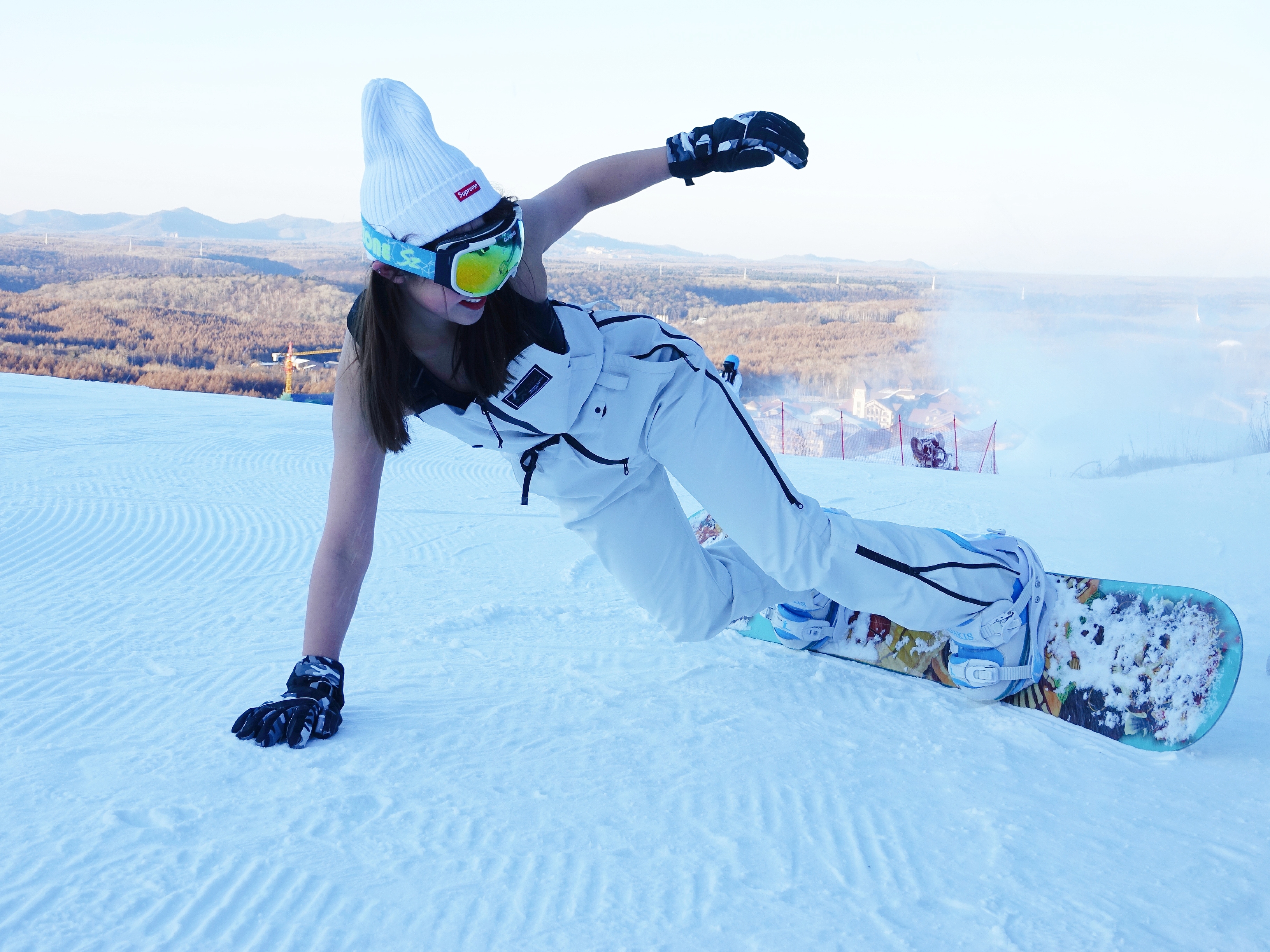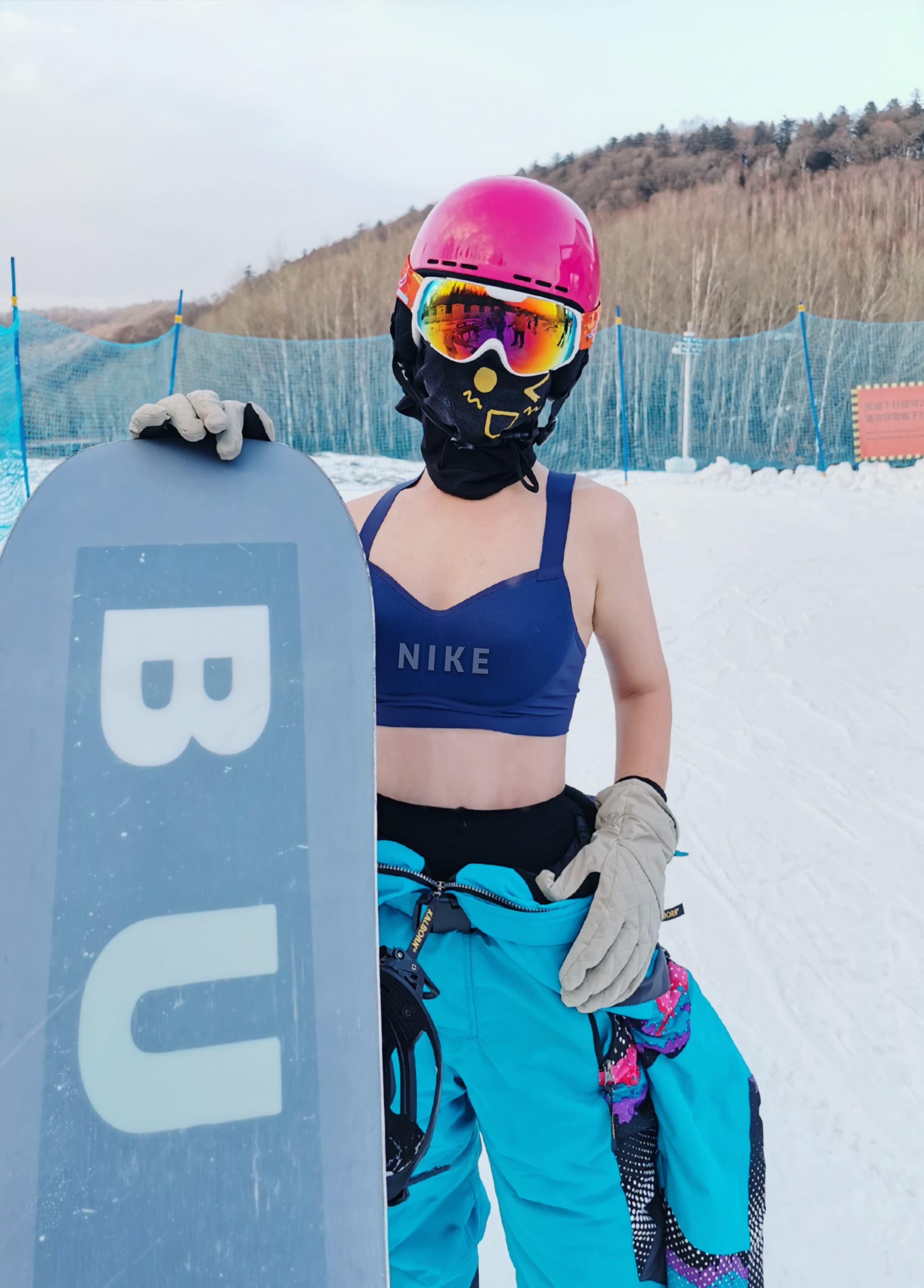 但是我做了一件更野的事:那就是直接脱掉连体滑雪服的上半身,穿着运动背心拍了一张很酷的照片。很多朋友问我冷不冷,答案是:人生难得一任性,酷就完事了!