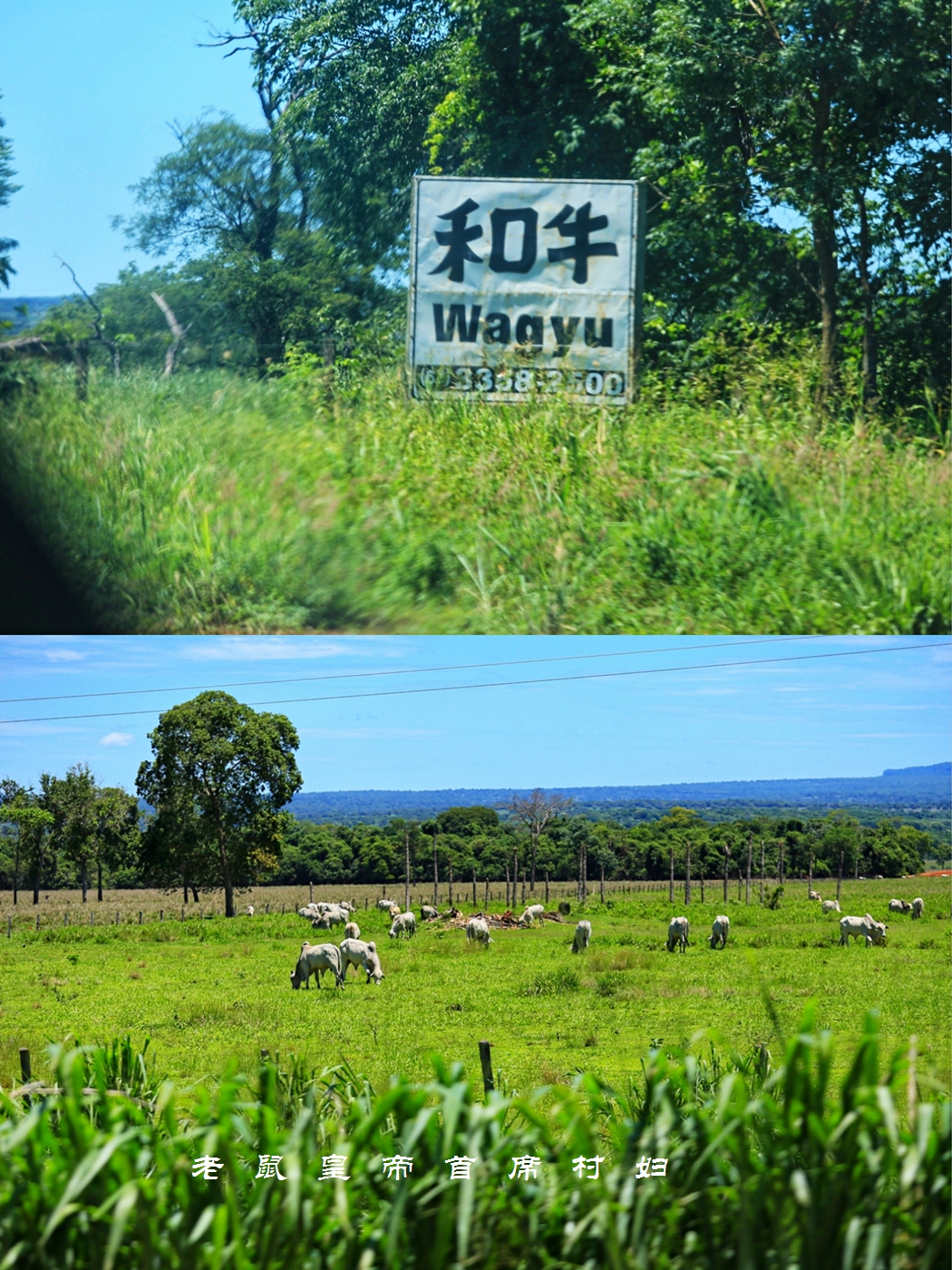 去湿地的路上,也是一路几乎不见城镇村庄,全是绿,公路两边常见一水的白色牛群,还看到“和牛”大牌子,难怪都说大坎普牛肉有名,看来品种不错。