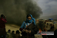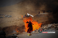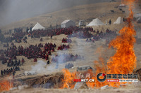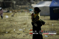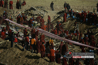7727--众多僧侣在废墟上为逝者祈祷诵经超度