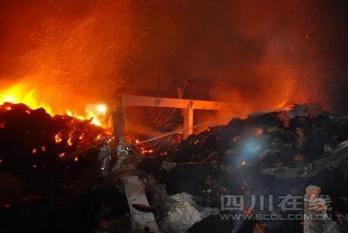 8970--大火包围成都一床垫厂 扑救10小时仍未灭
