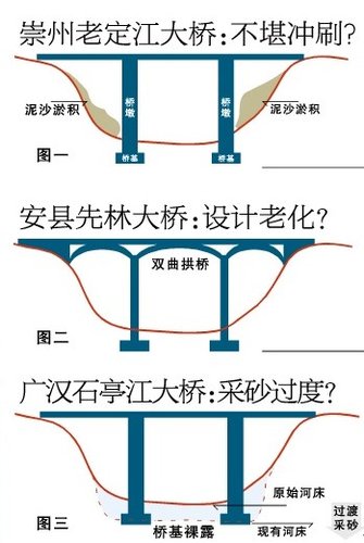 8月19日的暴雨中,安县先林大桥、崇州怀远老定江大桥、华阳通济古桥和宝成铁路广汉石亭江铁路大桥等4座桥梁相继垮塌。桥梁为何在洪水面前不堪一击?早报记者为此专访了四川省交通厅公路规划勘察设计研究院桥梁分院总工程师、高级工程师蒋劲松与西南交大桥梁系主任、博士生导师李亚东。