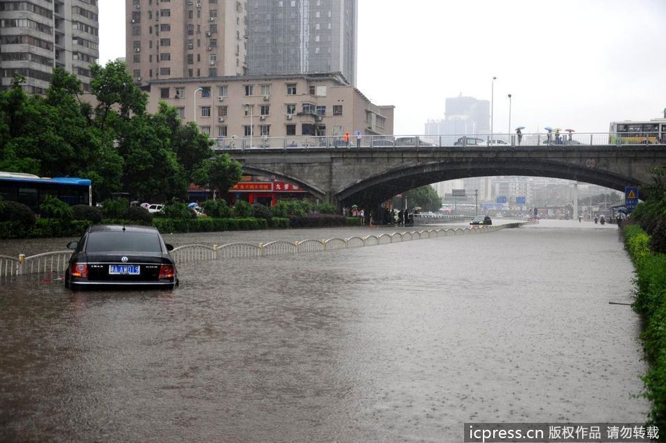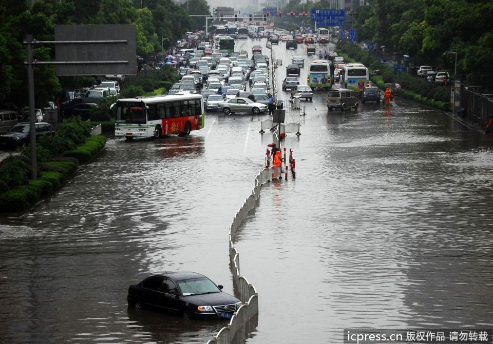 13990--长沙遭暴雨袭击积水严重 市区交通瘫痪