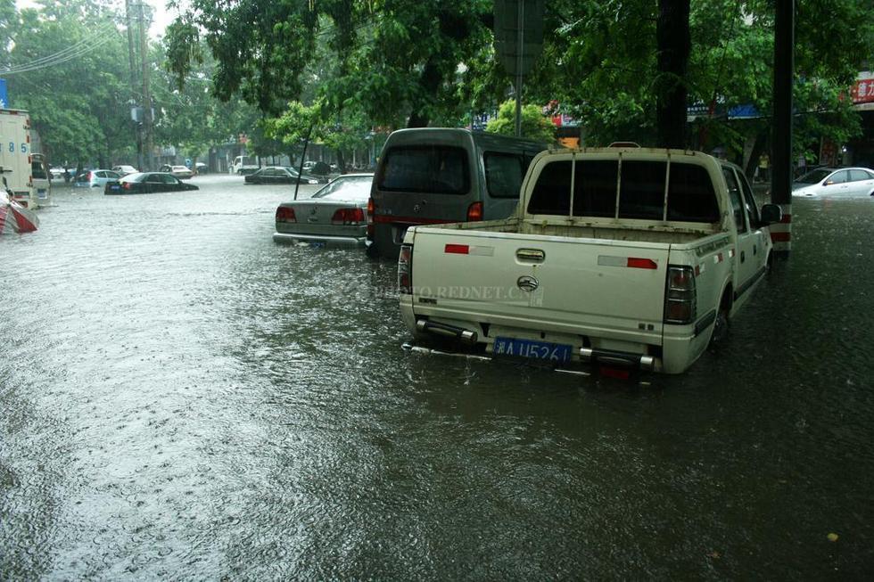 2011年6月28日下午,长沙遭遇暴雨袭击,城区部分地段由于积水较深,导致交通受阻。在积水较为严重的长沙市八一桥段,部分车辆已经抛锚,被浸水中。