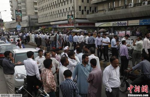 巴基斯坦电视台新闻频道也播出了地震发生后,该国南部城市卡拉奇建筑晃动的画面。