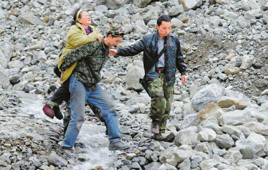 4月29日,因面临泥石流威胁,宝兴县穆坪镇冷木沟村民紧急转移。