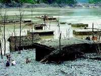 下午3时许,记者在现场看到,唐家山堰塞湖西岸的漩坪乡张家湾一带聚集着三三两两的人群,对着湖面间或露出的房屋议论不休。房屋重现最为集中的地方,地处原场镇乡政府宿舍所在地,宿舍周边的一些其他单位办公楼、民居等近10幢房屋齐齐出现。