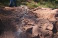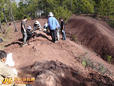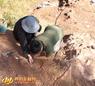即使十多年来小心保护这具化石,但肖桑还是担心有人打它的主意。撤离现场时,记者和肖桑、向导一起刨土,对露出地表的骨骼化石进行覆土掩埋。
