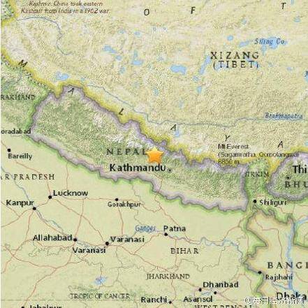 中国地震台网正式测定:04月25日14时11分在尼泊尔(北纬28.2度,东经84.7度)发生8.1级地震,震源深度20千米。