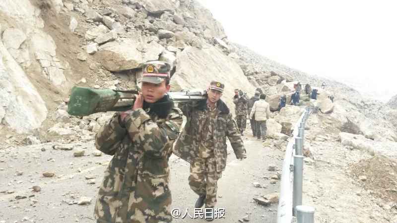 【直击现场】尼泊尔地震导致山体滑坡,阻断中尼公路,救援队正开展疏通工作。