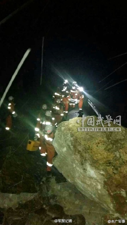 【西藏重灾区樟木镇发生山体滑坡】武警西藏消防总队日喀则支队首批赶往重灾区樟木镇的30名官兵,于26日凌晨3时40分许到达距聂拉木县城大约5公里处。由于山体滑坡,车辆无法行进,30名官兵于凌晨5时携带生命探测仪等装备紧急徒步向灾区挺进。(索朗多吉)