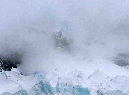 【珠峰雪崩瞬间画面】(珠峰大本营拍摄)