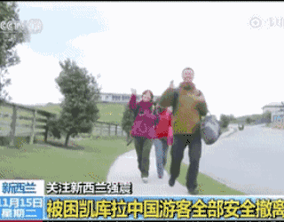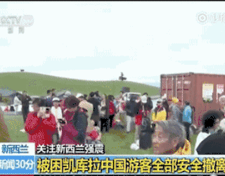 图为准备离开的中国游客。这次地震后,中国领事馆租用了5架直升机把困在凯伊库拉的125名中国游客全部安全撤离到南岛最大城市基督城,其中包含一位意大利籍的中国女婿。在中国公民全部撤出后,仍有超过1000名其他国家游客困在凯伊库拉,新西兰政府动用海空军开始救援这些游客。