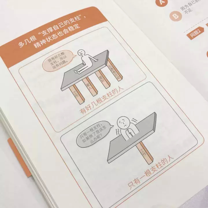 一旦唯一支柱倒了,整个人就随之会失控崩溃。多建立几根支撑自己的支柱,就可以在遭受负面情绪时,通过其它支柱来转移注意力和化解坏情绪。