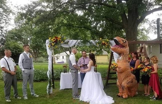 jour du mariage de sa soeur déguisée en… T-Rex !