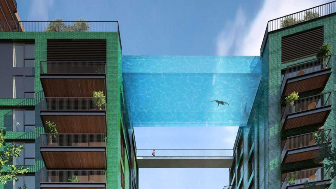 在伦敦令人难以置信的项目正在施工中。世界首个空中泳池即将面世,是在九爱慕斯区两座楼房之间建成。视频中是工地照片和建筑物及其35米高度透明泳池的最终效果图。