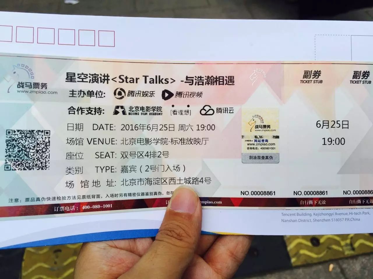 晒一下门票,4排2号很靠前的位置正中间!哎呀真的要好好的炫耀一下,希望以后这种高大上的活动腾讯能够多多邀请钧钧。