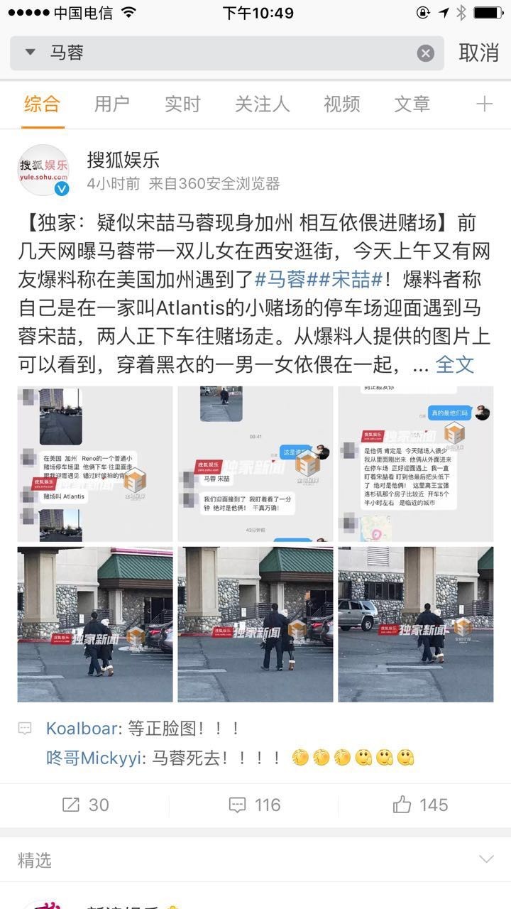 昨天全明星探更爆料称马蓉与宋喆现身加州,两人相互依偎走进赌场。