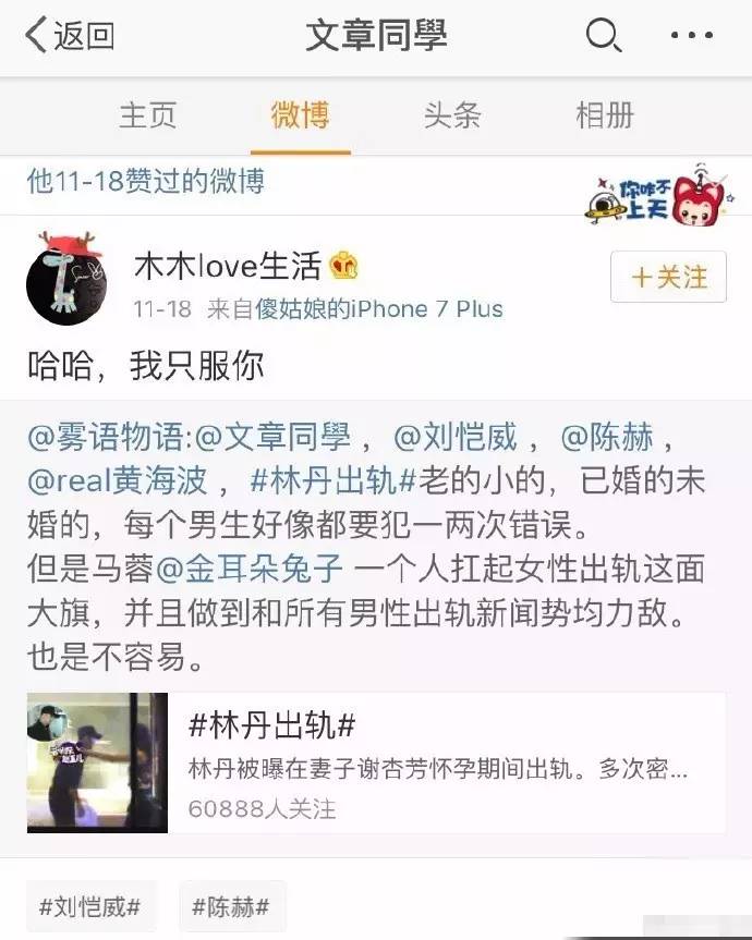 而同样马伊琍怀孕期间,文章出轨姚笛,简直与林丹情节一模一样。