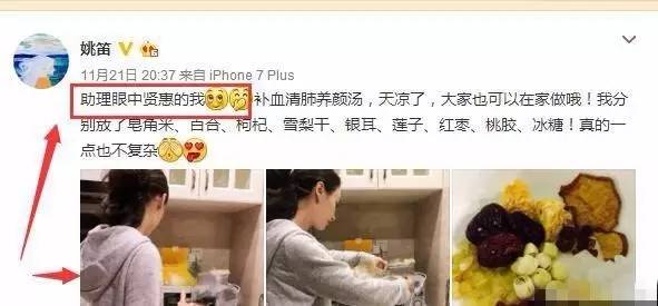 最近姚笛在微博晒厨艺,反而又被网友骂小三做汤,迷情汤?