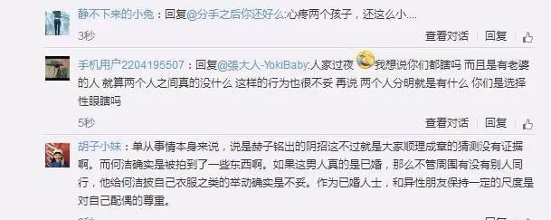 刁磊更是夜宿何洁家中,第二天下午四点才离开。目前双方暂时无回应。虽然没有回应,但是网友们表示,一位单亲妈妈留宿已婚男子,好像不大妥当吧,而且当着孩子的面亲密,恐怕不大好吧。