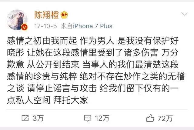 自两人分手后,毛晓彤因照旧正常工作而被陈翔的粉丝认为不尊重这段感情,遭受了相当多的网络暴力与攻击,就连她的家人也没有幸免,毛晓彤的母亲还因此接到了不少骚扰电话和短信,为了保护自己的家人,毛晓彤此次选择了站出来面对。
