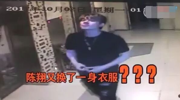 监控显示时间是:10月1日晚20:38。江铠同后援会显示其在机场穿的正是夜会陈翔所穿的同款服装。