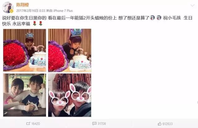 陈翔毛晓彤是娱乐圈里的金童玉女,两人于2015年相恋,之后两人不断在微博上秀恩爱,让众多粉丝催婚,在他们的微博,经常可以看到他们晒各自的照片,这把狗粮简直让网友们大呼受不了。